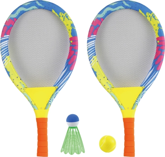 Dieses bunte Outdoor-Set bringt Kindern Freude an Bewegung und fördert die Motorik. Dank der weichen Bespannung und der leichten Bälle lernen Kinder mühelos die Grundlagen von Tennis und Badminton – ohne übermäßige Anstrengung oder Verletzungsrisiko. Ergonomische Schaumstoffgriffe liegen perfekt in kleinen Kinderhänden und sorgen für einen sicheren und bequemen Halt.