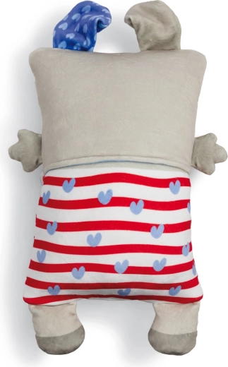 Entdecken Sie den zauberhaften Übergang zwischen Spiel und Ruhe. NICI Cosidoos ist ein weicher Hund mit grauem Körper und blauem Ohr, der sich mit nur einem Umdrehen vom verspielten Begleiter in ein weiches Kissen mit Nachtmotiv verwandelt. Kinder lieben seinen freundlichen Ausdruck, die sanften Materialien und die beruhigenden Farben mit Wolken, Sternen und Mondsichel.