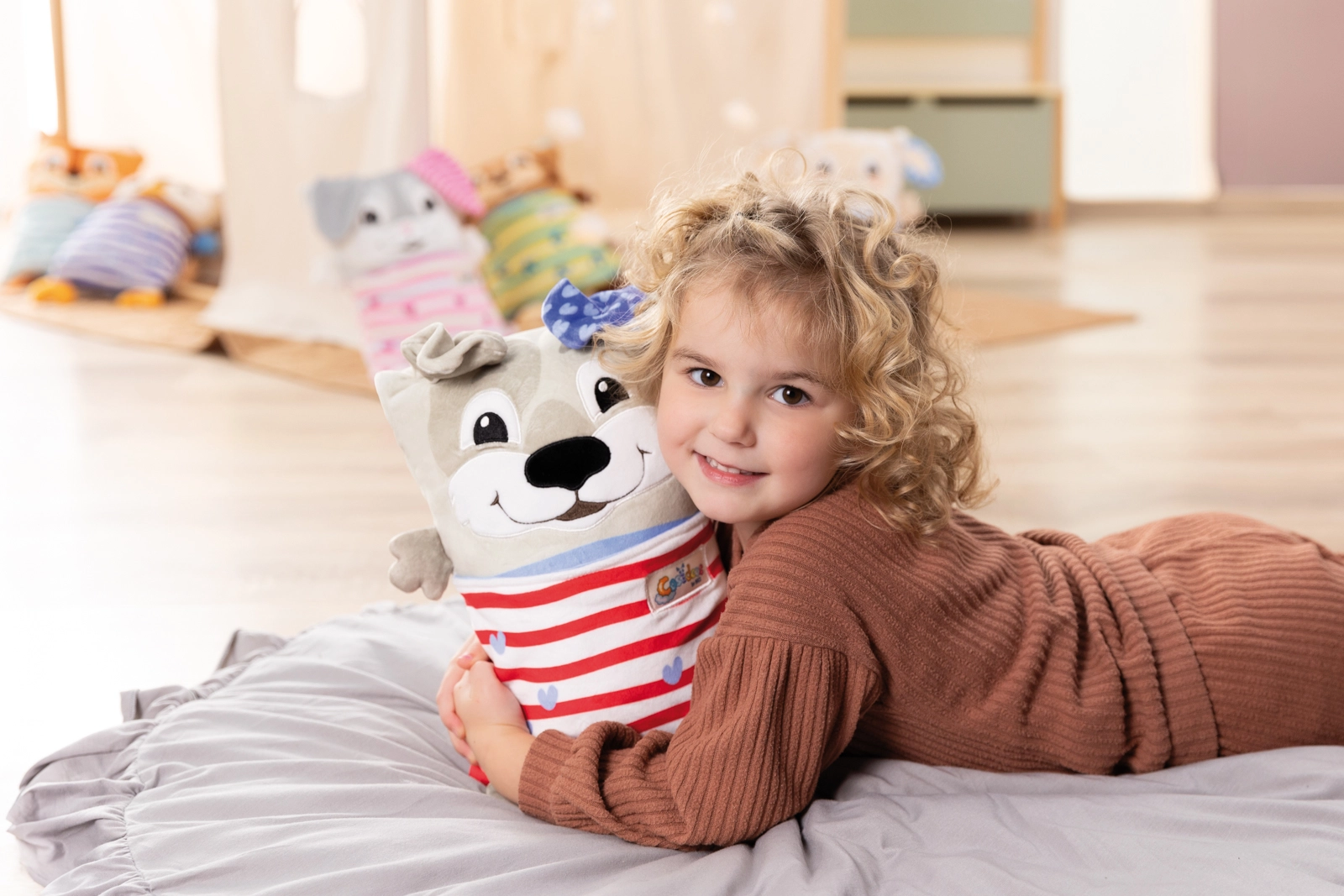2-in-1 – Spielzeug und Kissen; Taschen für Kleinigkeiten