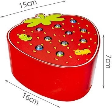 Ein unterhaltsames Holzspiel in Form einer leckeren Erdbeere, das die Feinmotorik und Konzentration fördert. Kinder ziehen mithilfe eines Magnetstäbchens Würmchen aus den Öffnungen und stecken sie wieder hinein. Das Spiel besteht aus sicheren Materialien und hat leuchtende Farben, die Kinder zum Spielen und Lernen motivieren. Eine tolle Wahl zur Förderung von Hand-Auge-Koordination, Kreativität und Geduld.