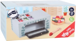 Der Holz-Pizzaofen mit Zubehör ist ideal für kleine Köche, die Spaß beim Backen wie Erwachsene haben möchten. Dieses Spielzeug fördert feinmotorische Fähigkeiten und unterstützt aktives Rollenspiel. Die Pizza besteht aus Holzteilen, die mit einem Klettverschluss verbunden sind, was eine einfache Änderung der Zutaten nach der Fantasie des Kindes ermöglicht.