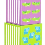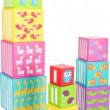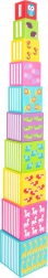 Die Würfel können zu einem hohen Turm gestapelt oder ineinander gesteckt werden. Das Spiel fördert räumliches Denken und die Feinmotorik.
