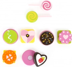 Entdecken Sie die Magie des süßen Spielens mit dem farbenfrohen Set aus hölzernen Leckereien von SMALL FOOT. Lutscher, Kekse und Pralinen bestehen aus 100% zertifiziertem FSC-Holz und können dank stabiler Klettverschlüsse von Kindern immer wieder geteilt und verbunden werden. Realistische Accessoires verwandeln jede Kinderküche in eine kreative Konditorei.