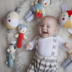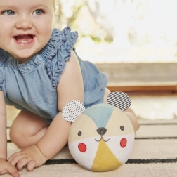 Die federleichte Rassel erzeugt einen angenehmen Klang, fördert das Hörvermögen und die Konzentration des Babys ohne übermäßige Reize.