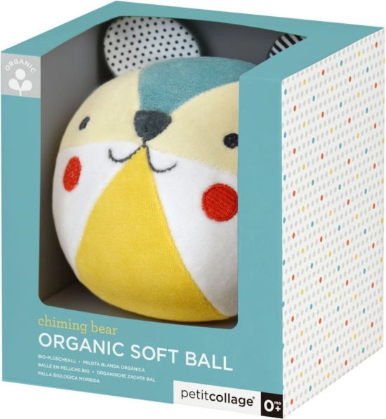 Niedliche Bärenrassel von PETIT COLLAGE für die Kleinsten. Hergestellt aus Bio-Baumwolle mit GOTS-Zertifizierung und gefärbt mit pflanzlichen, umweltschonenden Farben. Weich, sicher und ideal für erste Sinneserfahrungen ab der Geburt.