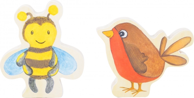Dieses hochwertige Holzbuch SMALL FOOT ist für kleine Entdecker ab 12 Monaten konzipiert. Dank der farbenfrohen Illustrationen und der zwei Holzfiguren von Biene und Vogel lernen Kinder spielerisch Tiere und Pflanzen kennen. Praktische Klettverschlüsse ermöglichen es, die Figuren auf der Rückseite des Buches zu befestigen, sodass sie nicht verloren gehen.