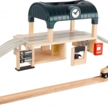 Entdecken Sie einen realistischen Bahnhof, der Fantasie, Rollenspiel und Feinmotorik fördert. Die robuste Konstruktion aus zertifiziertem FSC-Holz und durchdachte Details wie Fahrkartenautomat, Abfahrtstafel und kleiner Laden garantieren stundenlangen Spielspaß. Das offene Dach erschließt alle Spielbereiche und erleichtert das gemeinsame Spielen mehrerer Kinder.