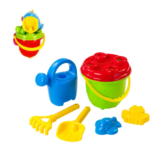 Im Set finden Sie die komplette Ausstattung zum Formen, Sieben und Umfüllen von Wasser. Die praktische Gießkanne und das Sieb erhöhen den Spielspaß, während die Förmchen in Form von Lokomotive, Flugzeug und Frosch für abwechslungsreiche Sandkunstwerke am Strand, im Sandkasten oder am Pool sorgen.