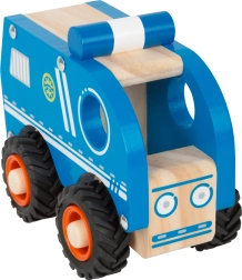 Entdecken Sie den Spielspaß auf der Polizeistation mit dem hölzernen Auto von Small Foot. Aus 100% FSC-Holz gefertigt, verbindet es natürliche Optik und farbige Details zu einem robusten Spielzeug, das perfekt in Kinderhände passt. Gummierte Räder sorgen für eine leise und stabile Fahrt auf verschiedenen Untergründen.