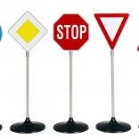 Das Set mit fünf der am häufigsten verwendeten Schilder (z. B. STOP, Vorfahrt gewähren, Vorfahrtsstraße, Gebotsrichtung, Fußgängerüberweg) hilft Kindern, sich die Grundregeln schnell anzueignen.