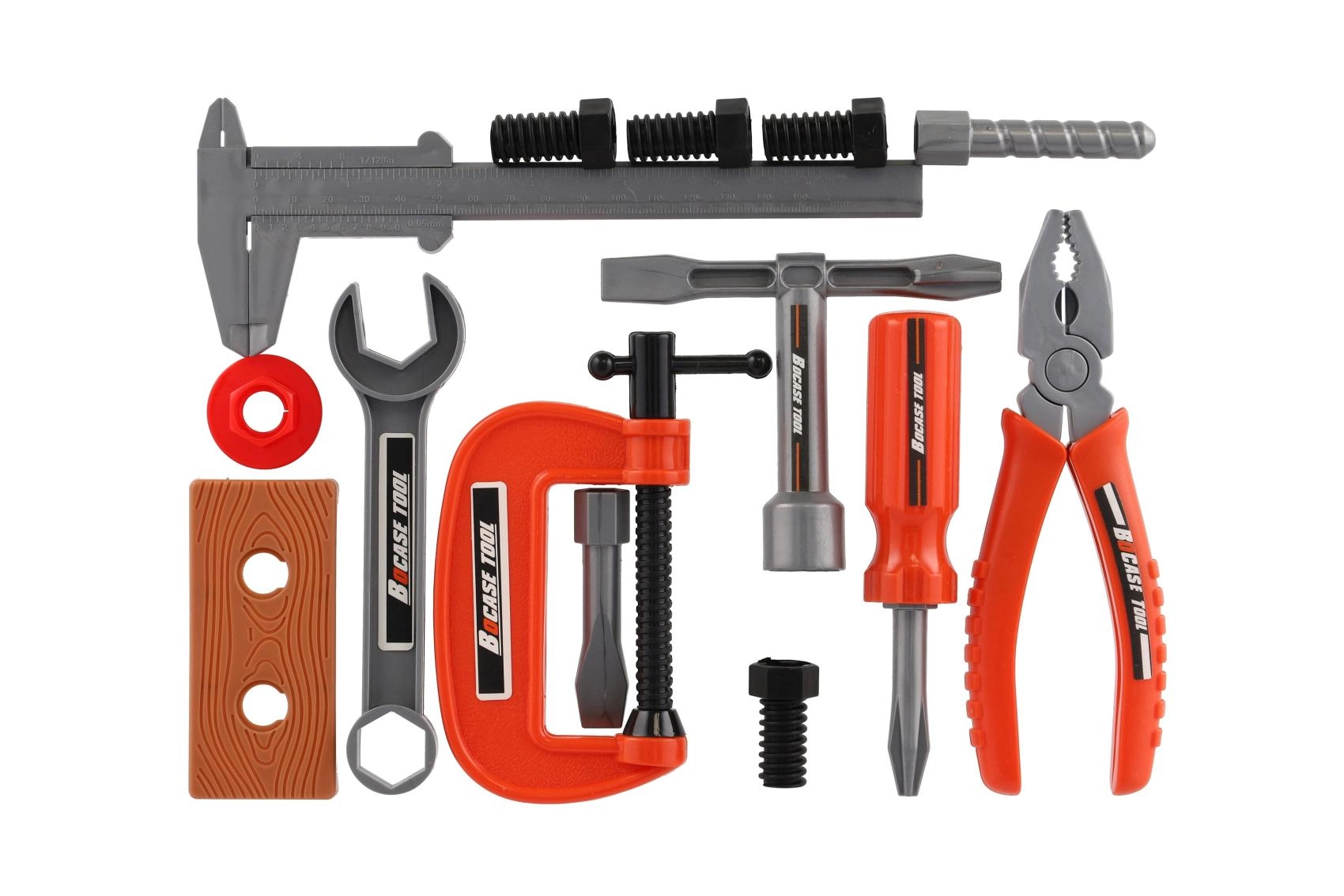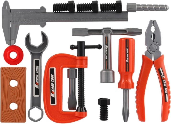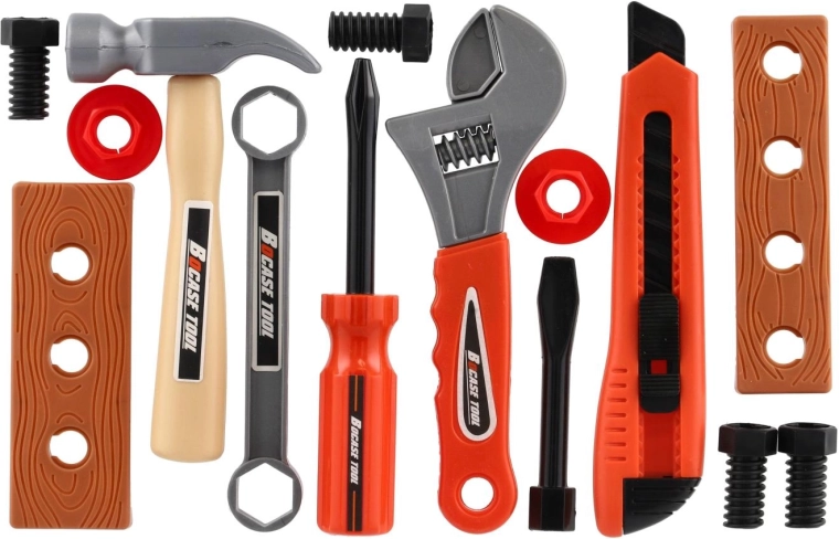 Dieses vielseitige Werkzeugset bietet Kindern alles, was sie brauchen, um die Arbeit echter Handwerker nachzuahmen – vom Hammer und Schraubendrehern über den verstellbaren Schlüssel bis hin zu Schraubstock/Klemme sowie Schrauben mit Muttern. Dank des leichten Kunststoffs und der sicheren Ausführung ist das Spiel angenehm und unbeschwert.