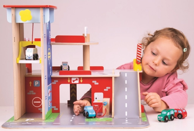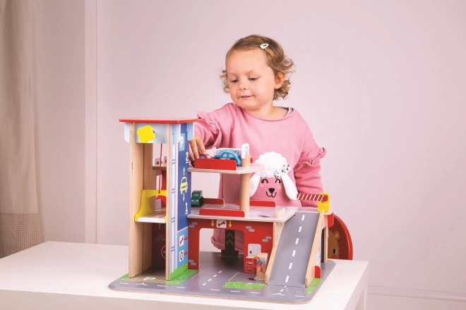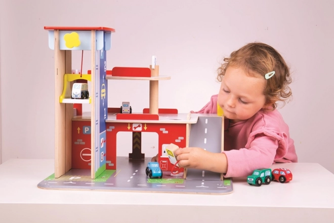 Kinder genießen ein spielerisches Erlebnis auf jeder der drei Etagen der Garage mit Parkplatz. Im Erdgeschoss können sie mit dem Auto in den funktionierenden Aufzug fahren und anschließend bis in den zweiten Stock hinauffahren und parken. Im Erdgeschoss finden Kinder einen Servicebereich, eine Waschanlage und eine Tankstelle. Vom ersten Stock aus können die Autos mithilfe des Aufzugs oder über die Rampe abfahren – aber Achtung, die Autos müssen auf das Heben der Schranke warten! Der höchste Punkt der Garage ist der Hubschrauberlandeplatz. Diese Garage hat einfach alles, was ein kleiner Fahrer braucht, um von Punkt A nach Punkt B zu kommen. Sie fördert Kreativität und Vorstellungskraft. Entwickelt die Hand-Auge-Koordination, die Feinmotorik und die Geschicklichkeit. Kann mit den Autos von Bigjigs Toys und Bigjigs Rail ergänzt werden. Hergestellt aus hochwertigen, verantwortungsvoll bezogenen Materialien. Hauptmerkmale: 3 Etagen mit Parkplatz und Hubschrauberlandeplatz, funktionierender Aufzug, Service, Waschanlage und Tankstelle im Erdgeschoss