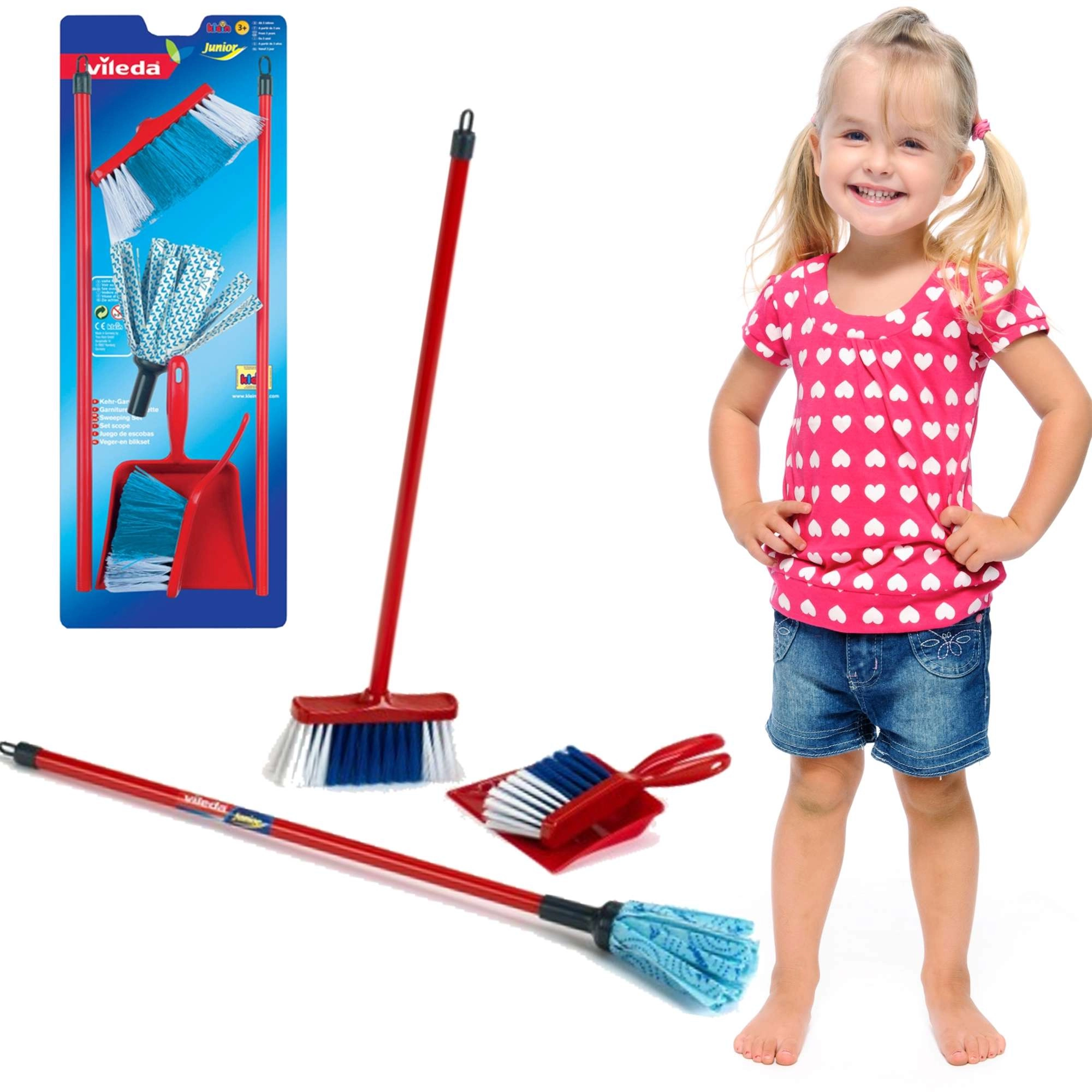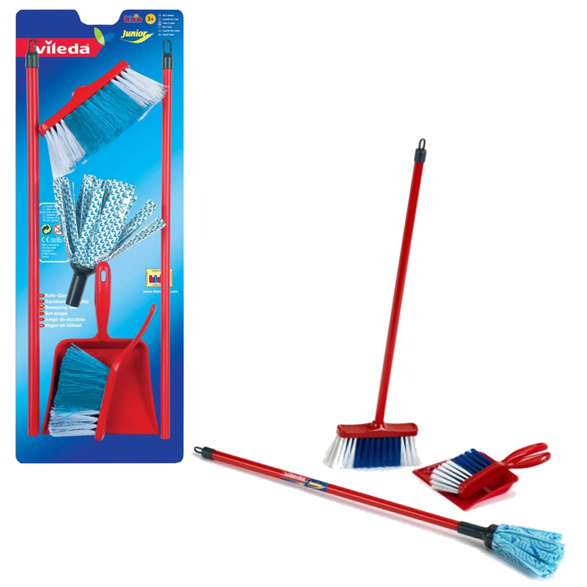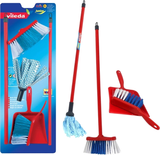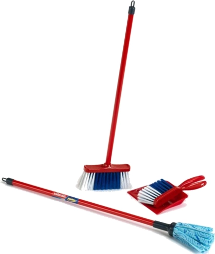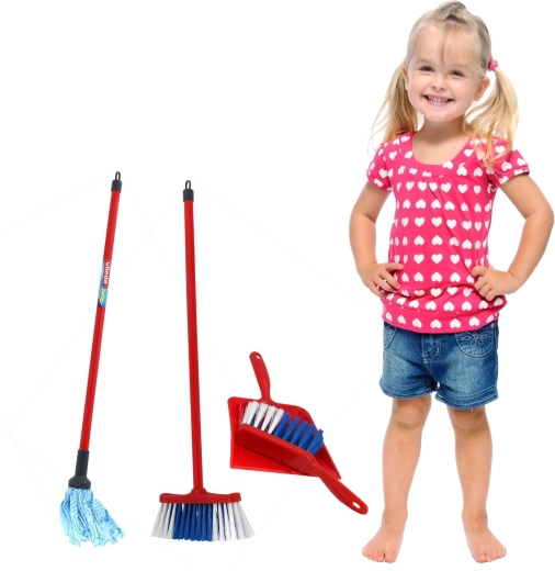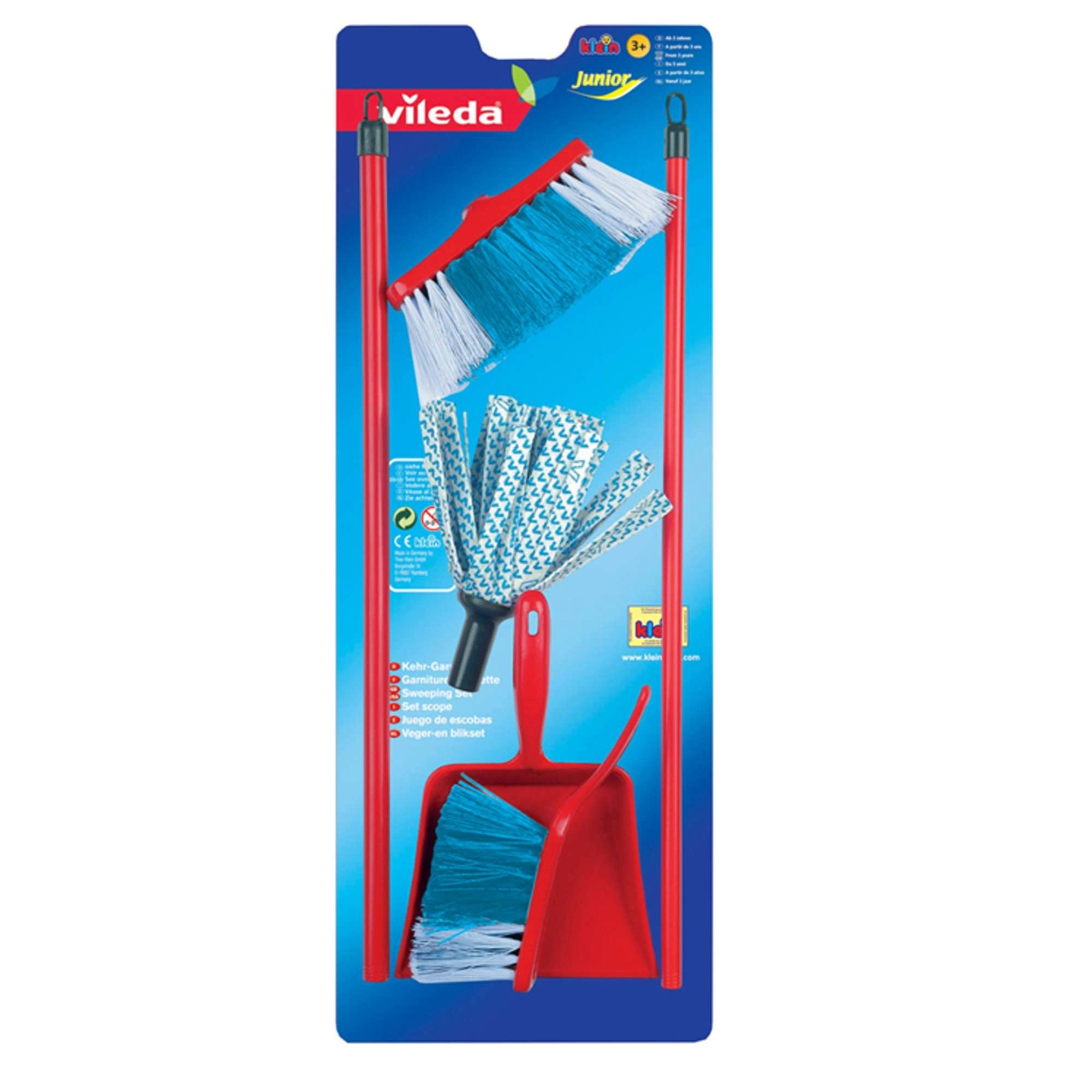 Das realistische Kinder-Reinigungsset unter der Lizenz von Vileda der Marke KLEIN begeistert kleine Helfer, die gerne Erwachsene nachahmen. Es enthält Mopp, Besen, Kehrschaufel und Handfeger in leichter Ausführung mit auf Kinder abgestimmten Maßen. Geringes Gewicht, robuste Verarbeitung und originalgetreues Design echter Reinigungsutensilien fördern sowohl Spielspaß als auch das Lernen von Ordnung.