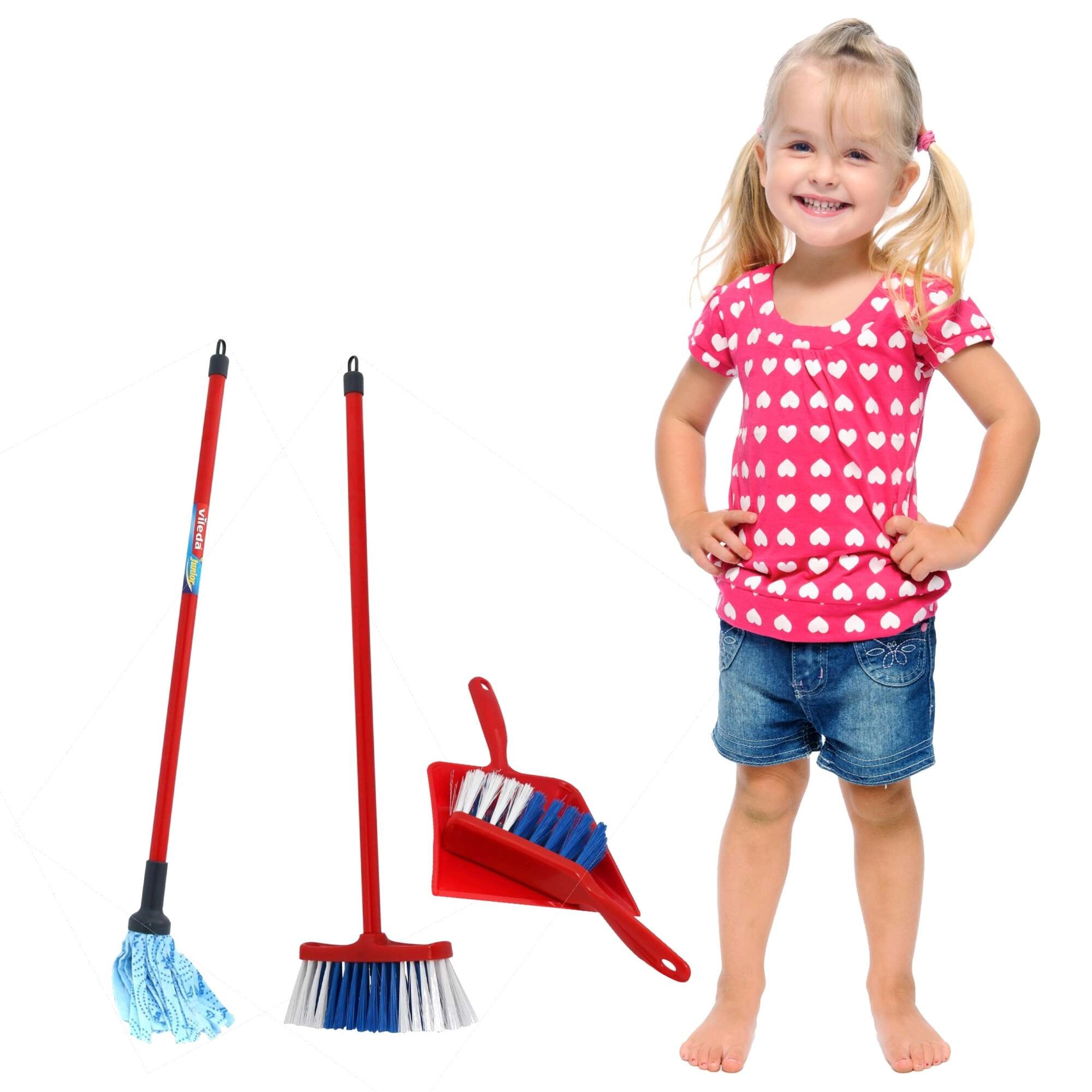 Dieses Kinder-Reinigungsset wurde mit Liebe zum Detail gefertigt und ist eine originalgetreue Nachbildung der Vileda-Hilfsmittel. Kinder können sicher alltägliche Tätigkeiten wie Wischen und Fegen ausprobieren und entwickeln ganz natürlich Gewohnheiten zur Haushaltsführung.