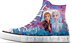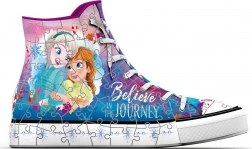 Geniale Verbindung von Spaß und Praktikabilität: 3D-Puzzle in Form eines High-Top-Sneakers mit den beliebten Heldinnen aus Die Eiskönigin 2. Dank der stabilen Kunststoffteile entsteht eine robuste Deko, die als Stiftebecher für Stifte, Buntstifte und Scheren dient – ganz ohne Kleber, einfach und mit perfektem Ergebnis.