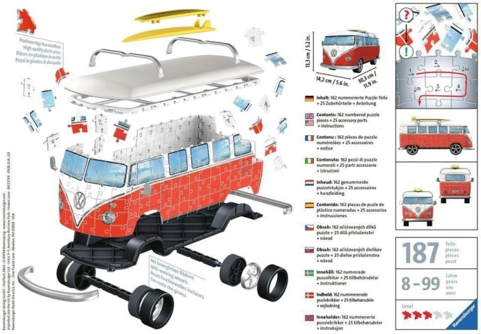 Das 3D-Puzzle fördert Konzentration und Feinmotorik und bietet zugleich eine unterhaltsame Möglichkeit, das ikonische Design des klassischen „Bulli“ kennenzulernen. Der Aufbau ist intuitiv und führt zu einem zufriedenstellenden Ergebnis, das jeden Auto- und Puzzleliebhaber erfreut.