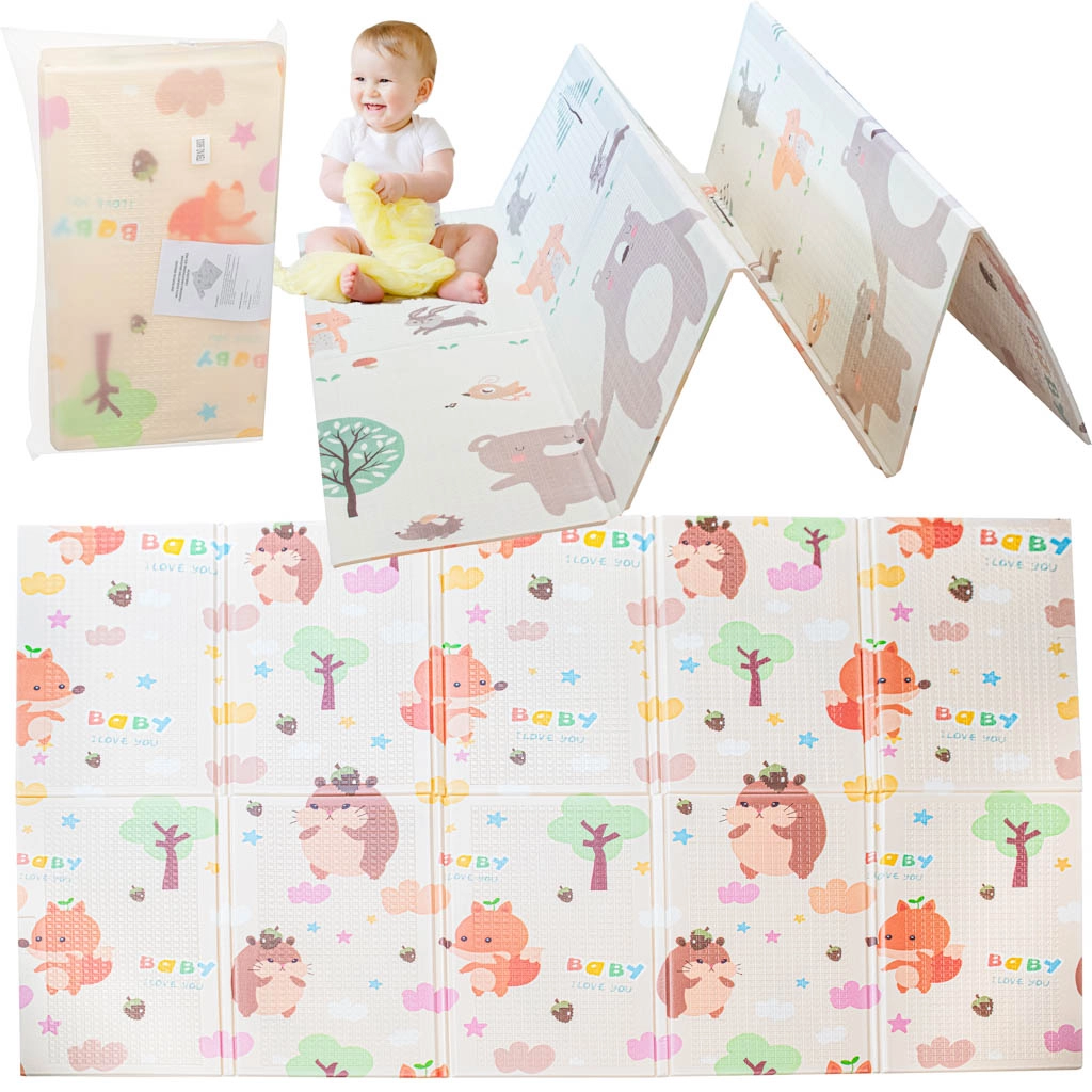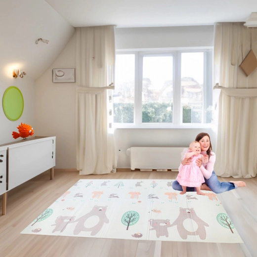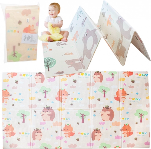 Wir bieten Ihnen eine beidseitig faltbare Schaummatte mit Igel- und Bärenmotiven, die aus sicherem XPE-Material besteht, das sich durch Weichheit und Haltbarkeit auszeichnet. Die Matte ist geeignet für Kinder bereits ab den ersten Lebenstagen, wobei ihre weiche Textur ideal zum Krabbeln und für die ersten Schritte ist.