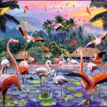 Lebendige Farben, Flamingos und Seerosen schaffen eine Szene, die Sie in den Bann zieht und nach dem Einrahmen jeden Raum schmückt.