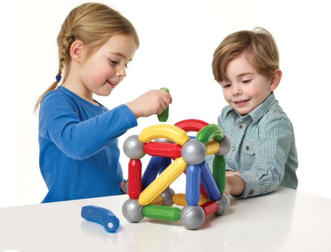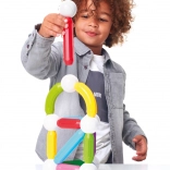 Der magnetische Baukasten SmartMax Start Plus ist die ideale Wahl für kleine Entdecker. Das Set enthält 30 Teile, darunter lange Stäbe, mittlere Stäbe, Kurven und Verbindungskugeln, die den Aufbau einfacher und komplexer Konstruktionen ermöglichen. Kinder können verschiedene 2D- und 3D-Formen und Bauwerke wie Türme oder Brücken ausprobieren.