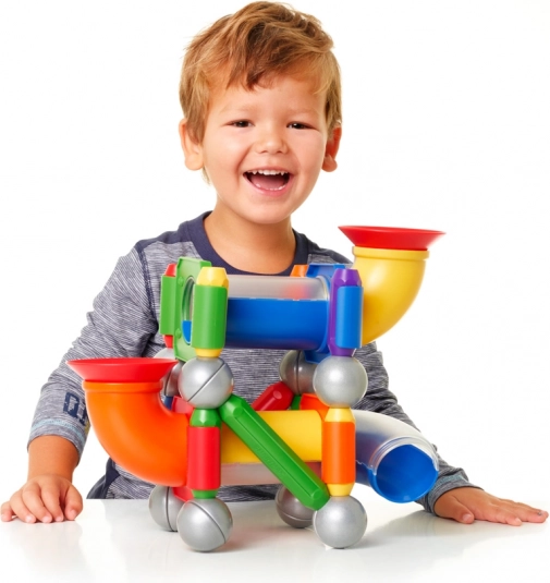 Genießen Sie stundenlangen kreativen Spaß mit der SmartMax Bahn für Kugel. Dieses magnetische Baukastensystem fördert die kindliche Vorstellungskraft durch einfaches Verbinden der Teile. Jedes Teil lässt sich mit einem Klick einfach verbinden, was den Bau verschiedener Strukturen wie Türme, Brücken und mehr ermöglicht.