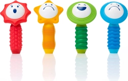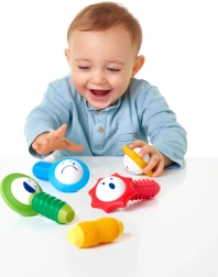 Das SmartMax-Set ist so konzipiert, dass es die Feinmotorik und die Sinneswahrnehmung kleiner Kinder fördert. Es enthält 4 magnetische Stäbe mit weicher Oberfläche und 4 Blumenkugeln, die beim Schütteln einzigartige Geräusche erzeugen. An jeder Kugel sind verschiedene Emotionen dargestellt, wodurch Kinder lernen, Emotionen und Farben zu erkennen.