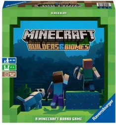 Ravensburger MINECRAFT: Builders & Biomes bringt die beliebten Spielelemente des Videospiels auf deinen Tisch. Reise über den Spielplan, baue Holz, Stein und weitere Ressourcen ab, errichte einzigartige Konstruktionen und sammle Punkte durch clever gewählte Strategien. Jede Runde bietet neue Optionen und Chancen, deine Gegner auszutricksen.