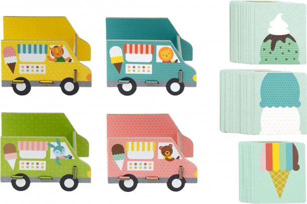 Genießt eine süße Portion Spaß mit dem Familienspiel Petit Collage Die beste Eiscreme. Kinder stapeln Eistüten, sammeln so viele Kugeln wie möglich und vergessen die leckeren Streusel nicht. Das Spiel fördert Wahrnehmung, strategisches Denken und Feinmotorik, ist dabei schnell und leicht zu verstehen.