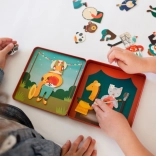 Dieses magnetische Buch der Marke PETIT COLLAGE ist ein toller Begleiter zu Hause und unterwegs. Kinder können die Magnete einfach auf die Innenszenen setzen, verschiedene Teile kombinieren und fröhliche tierische Musiker erschaffen. Dank der kompakten Metallbox bleibt alles sicher verstaut und nichts geht verloren.