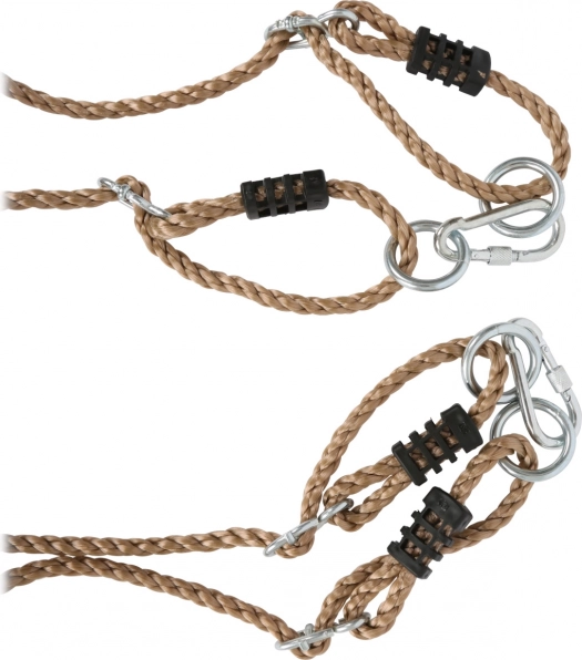 Nylonseile mit Metallösen, Ringen und Sicherheitskarabinern sorgen für ein schnelles, stabiles und sicheres Aufhängen.