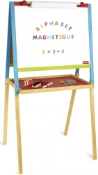 Fördern Sie die Kreativität der Kinder mit dieser stabilen 2-in-1-Holztafel. Sie bietet eine schwarze Fläche für Kreide und eine weiße magnetische Fläche für Marker, einen Papierrollenhalter, einen großen Ablagebereich und umfangreiches Zubehör. Hergestellt in Frankreich aus Massivholz, mit wasserbasierter Oberflächenbehandlung – eine sichere und robuste Lösung für das tägliche Kreativsein.
