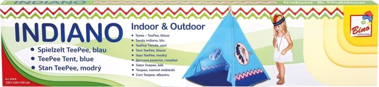 Entdecken Sie den Zauber eines Spielverstecks mit dem blauen Bino-Tipi. Das großzügige Zelt mit den Maßen 120 × 120 × 150 cm bietet Kindern einen sicheren und bequemen Platz für Fantasie, Lesen und ruhige Momente. Robuste Holzstangen sorgen für eine stabile Konstruktion, während der leichte Stoff ein schnelles Aufbauen und Transportieren ermöglicht.