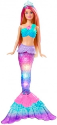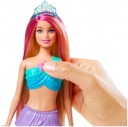 Die Barbie Dreamtopia Meerjungfrau ist die ideale Freundin für Badewanne, Pool und trockenes Spielen. Ihre wunderschön gestaltete Flosse leuchtet beim Eintauchen in mehreren Effekten und verleiht jedem Bad und jeder Geschichte eine magische Atmosphäre. Die Lichter lassen sich auch ohne Wasser durch einfaches Drücken des Knopfes am Korsett aktivieren.