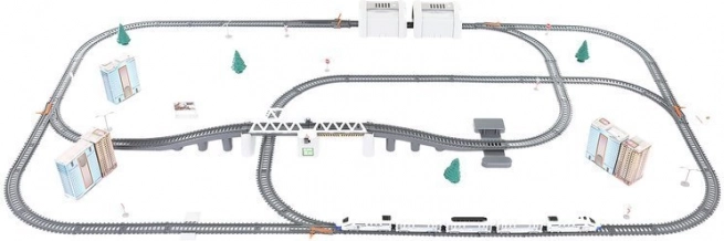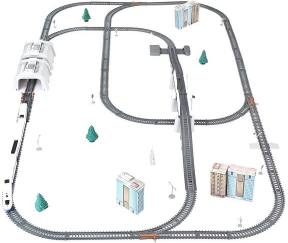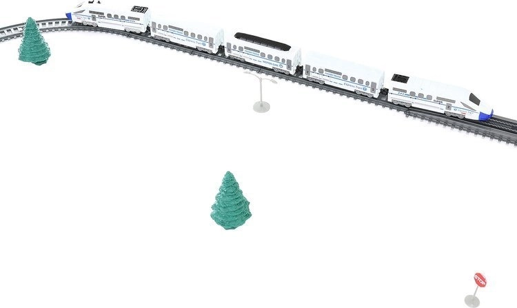 - Abmessungen der Lokomotive mit Wagen (Länge / Breite / Höhe): 60 / 2,5 / 3 cm