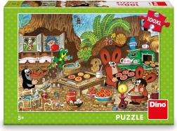 Tauchen Sie mit den Kindern in die Welt des beliebten Helden, des kleinen Maulwurfs, und seiner Freunde ein. Das Puzzle Dino – Der kleine Maulwurf in der Küche 100 XL bietet eine farbenfrohe, verspielte Illustration voller Details, die Kinder beim Puzzeln mit Freude entdecken. Die großen Teile lassen sich leicht greifen und liegen auch in kleineren Kinderhänden gut.