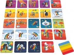 Die Kärtchen bestehen aus festem, gesundheitsunschädlichem Karton, der häufige Nutzung gut aushält. Die Packung enthält 48 Kärtchen (24 Paare), und eine Partie dauert etwa 20 Minuten – ideal, um die Aufmerksamkeit von Kindern aufrechtzuerhalten.