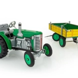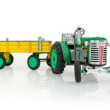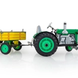Grüner Zetor Traktor mit Anhänger und Federwerk Kovap