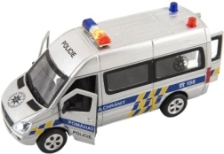 Robustes Polizeiauto aus Metall mit Kunststoffdetails begeistert alle kleinen Ordnungshüter. Es bietet Licht- und Soundeffekte, einen Rückziehmotor für den schnellen Start, öffnende Türen und wird mit Batterien im Lieferumfang geliefert.