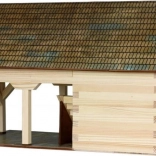 Dieser Holz-Klebebausatz stellt originalgetreu einen traditionellen Schuppen aus der walachischen Region dar. Grundlage sind Leisten 9×9 mm, ergänzt durch Papierdetails wie Fenster, Türen und Dachelemente. Enthalten sind eine ausführliche Montageanleitung sowie kurze Kapitel zur Geschichte der Volksarchitektur, die den Bau mit spannenden Hintergründen bereichern.