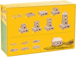 Der Vario XL Bausatz besteht aus hochwertigem, massivem Buchenholz mit einem Durchmesser von 15 mm. Dieser Bausatz bietet dank seiner 184 Teile unendliche Kreativmöglichkeiten. Enthalten ist alles Nötige zum Bau verschiedener Modelle, einschließlich Holzstäben mit einem Querschnitt von 9x9 mm, Teilen für Giebel und Dächer, Kartonausstanzungen für Fenster und Türen sowie Papierbedruckungen für präzise Details.