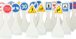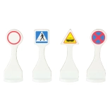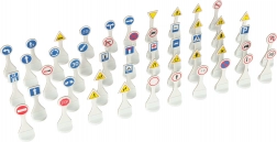 Eine große Auswahl der meistverwendeten Zeichen in verschiedenen Formen und Farben ermöglicht Kindern, reale Verkehrssituationen nachzustellen und spielerisch sicher zu lernen.