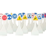 Das Set unterstützt Verkehrserziehung, die Entwicklung der Feinmotorik und des logischen Denkens. Enthalten sind Beschreibungen der Zeichen auf Tschechisch und Slowakisch.