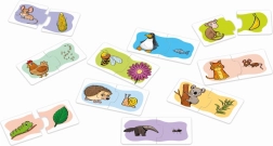 40 zweiteilige Kärtchen mit Tieren (20 Paare), wiederverschließbarer Beutel, Schachtel mit Motivbeispielen