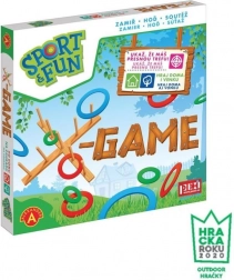 SPORT & FUN von ALEXANDER wurde in Tschechien als Spielzeug des Jahres 2020 in der Kategorie OUTDOOR ausgezeichnet. X-GAME ist ein dynamisches Set, bei dem Sie 3 Ringe mit unterschiedlichen Durchmessern auf einen kreuzförmigen Holzständer werfen. Punkte erhalten Sie je nach Ringgröße und Trefferzone. Das Spiel fördert Koordination, Gleichgewicht und baut durch Bewegung gesunde Gewohnheiten auf.
