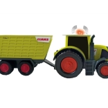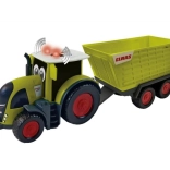 Der Traktor Claas mit Anhänger bietet kleinen Kindern ein authentisches Bauernhoferlebnis. Das Spielzeug besteht aus grünem Kunststoff mit schwarzen und roten Elementen und ist etwa 28 cm lang. Dank der süßen Augen, die den Traktor schmücken, zaubert er Kindern Freude und ein Lächeln ins Gesicht. Er ist für Kinder ab 12 Monaten geeignet und im Hinblick auf Kindersicherheit mit abgerundeten Ecken und Kanten gestaltet.