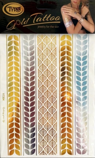 Goldene temporäre Armbänder TyToo sind ein echtes Schmuckstück für Ihre Haut. Sie sind einfach und schnell anzuwenden, geeignet für verschiedene Körperteile.