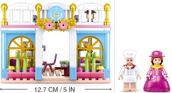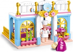 Bauen Sie eine stilvolle Bäckerei/Konditorei mit farbenfrohen Details, Tischen und einem Schaufenster voller Leckereien. Zwei Minifiguren – ein geschickter Konditor und eine Kundin – beleben Alltagsszenen und fördern Fantasie, Feinmotorik sowie die Fähigkeit zur Zusammenarbeit.