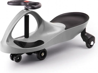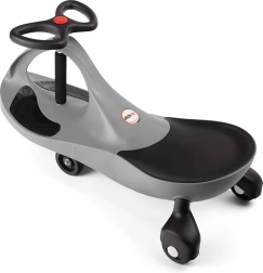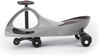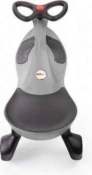Der graue Didicar ist ein cleveres Rutschfahrzeug, das ohne Ketten, Motor und Batterien auskommt – es genügt, das Lenkrad von Seite zu Seite zu drehen. Dank niedrigem Schwerpunkt, bequemem Sitz und stabilem Unterbau ist die Fahrt sowohl im Innenbereich als auch draußen auf Asphalt oder Beton geschmeidig und sicher. Zertifizierungen für den europäischen und amerikanischen Markt unterstreichen den Fokus auf Sicherheit und Qualität.