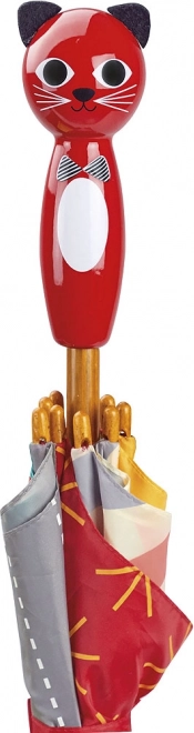 Bunter Kinderregenschirm mit katzenförmigem Griff