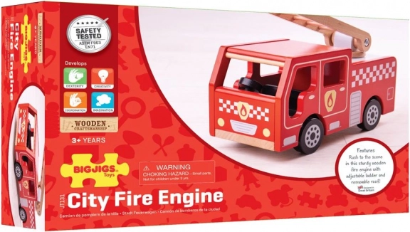 Wir präsentieren das Holzfeuerwehrauto von Bigjigs Toys, das die Vorstellungskraft und Kreativität Ihrer Kinder fördert. Dieses erstaunliche Fahrzeug ist mit einer drehbaren Leiter und einem aufklappbaren Fahrzeugdach ausgestattet, das den Kindern ermöglicht, auch die höchsten Stellen zu erreichen und endlose Rettungsszenarien zu spielen. Kompatibel mit den Feuerwehrfiguren aus unserem Angebot (separat erhältlich).