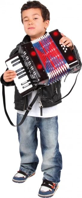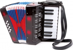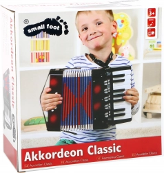 Das Kinder-Akkordeon small foot Classic bringt Freude am Entdecken von Klängen und Rhythmen ins Kinderzimmer. Das leichte Kunststoffgehäuse, die kompakten Maße und die bequemen Gurte ermöglichen Kindern das Spielen im Stehen oder Sitzen ohne unnötige Anstrengung der Hände. Bunte Bälge und die glänzende Ausführung fallen sofort ins Auge.